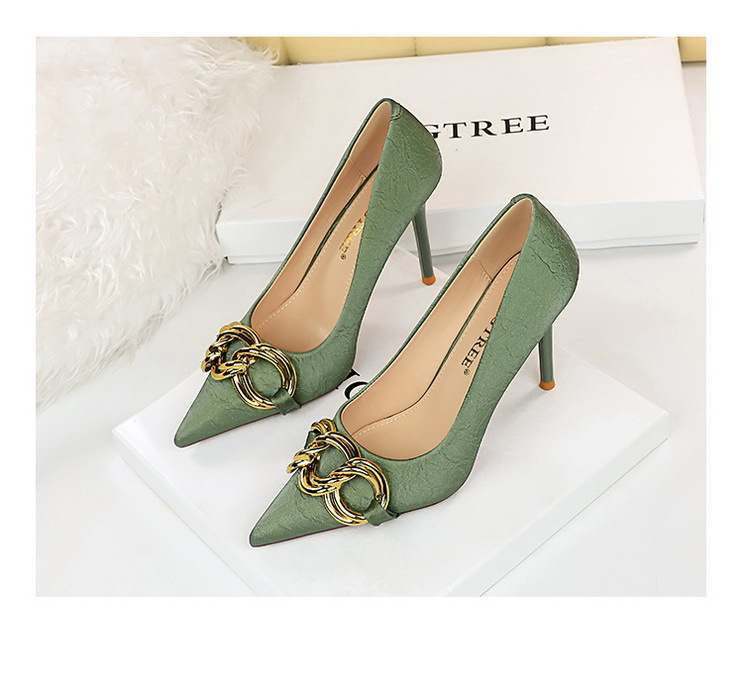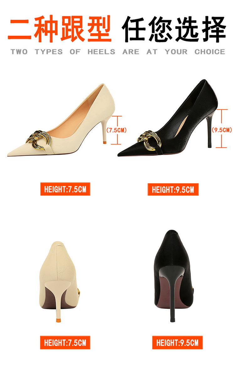 7239-1 Fashion Sexy Night Club Slim Slim Heel Super High Heel Women's Shoes Shallow Mouth Pointed Head Large Metal Buckle Single Shoes