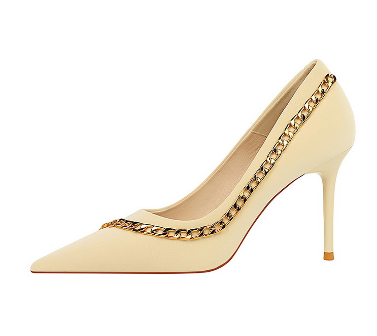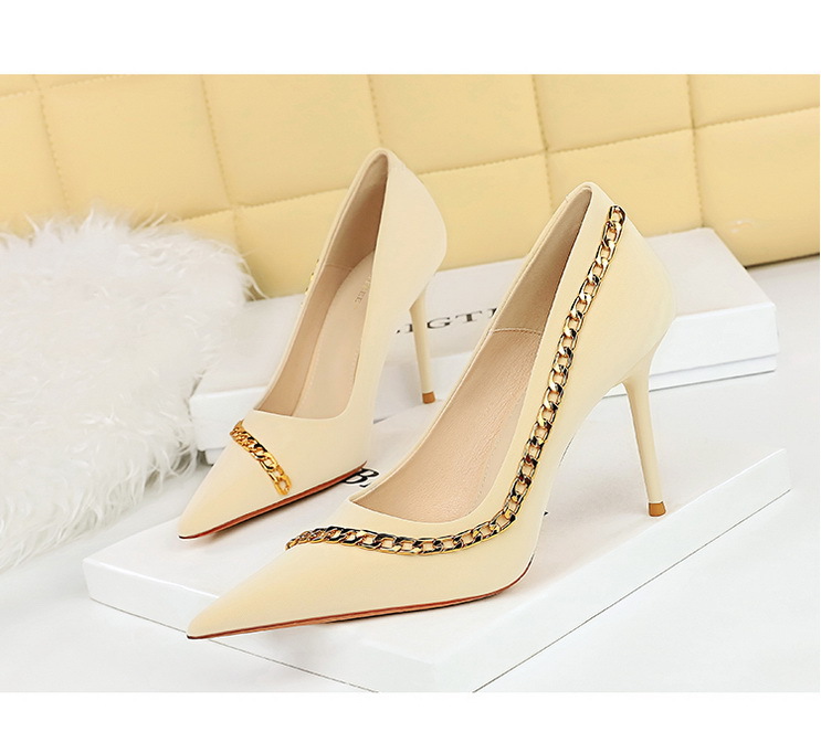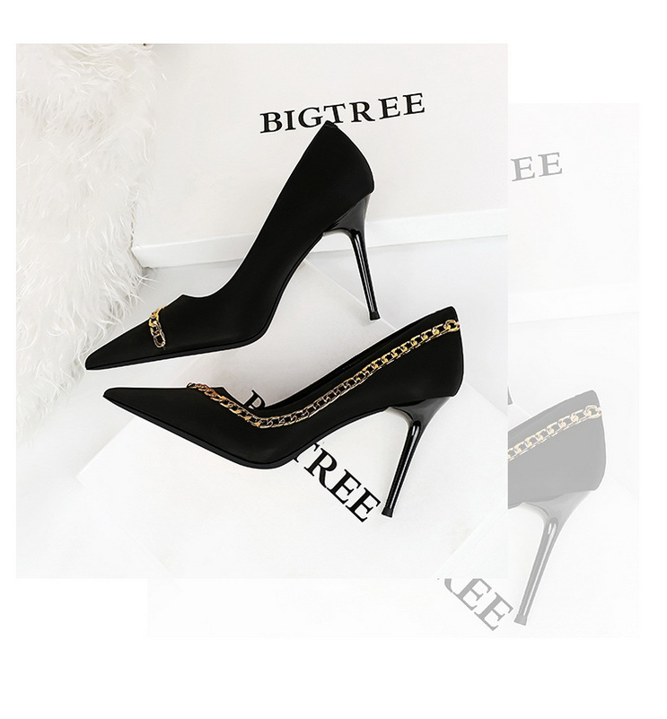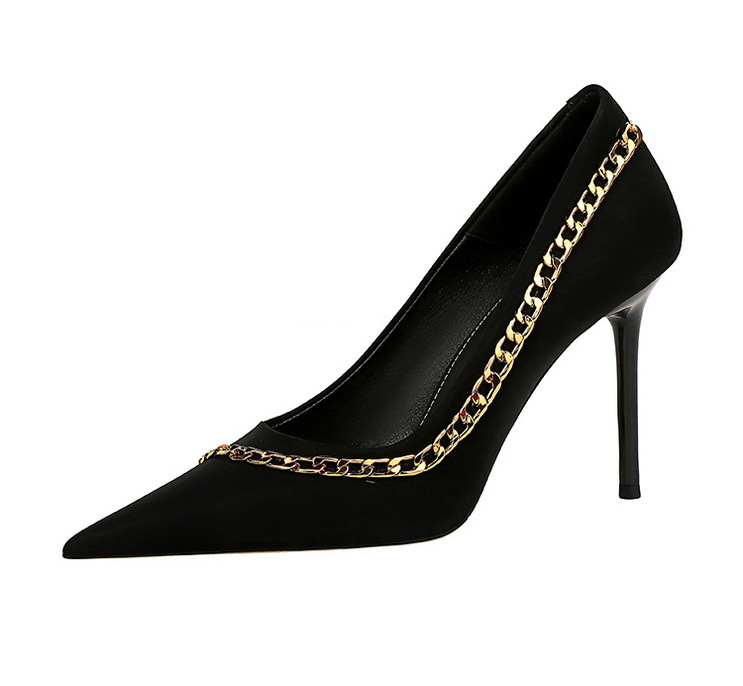 3739-2 Sexy Nightclub Slim Slim Slim Heels Super High Heels Shallow Mouth Pointed Metal Chain Women's Shoes Single Shoes