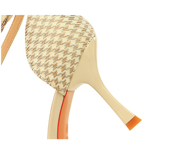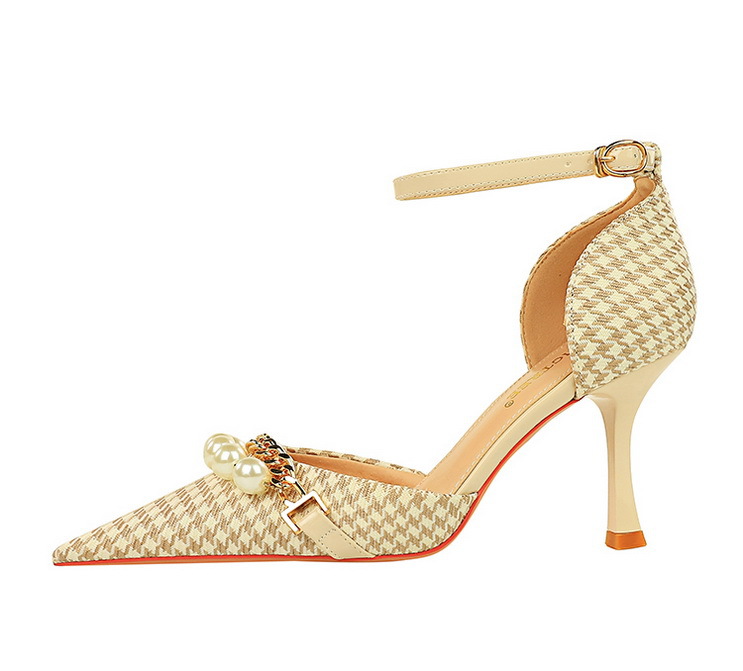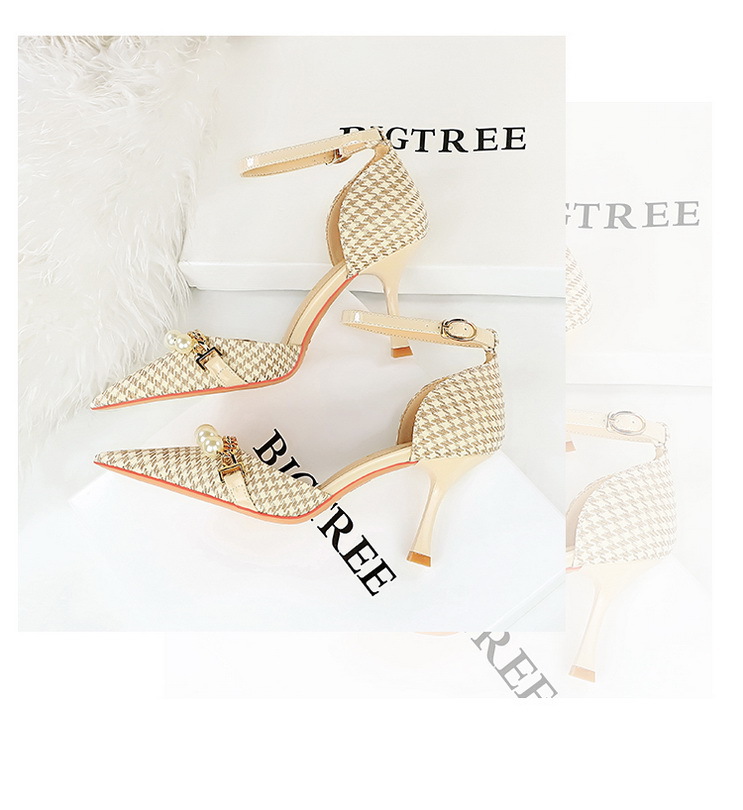 8323-9 Banquet Hollow High Heels Checkered Thousand Bird Plaid Pearl Metal Chain with Sandals Female