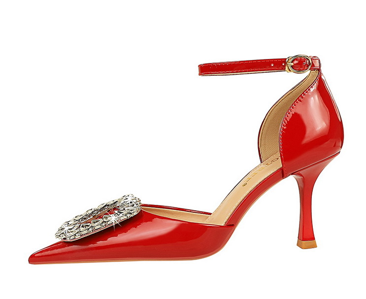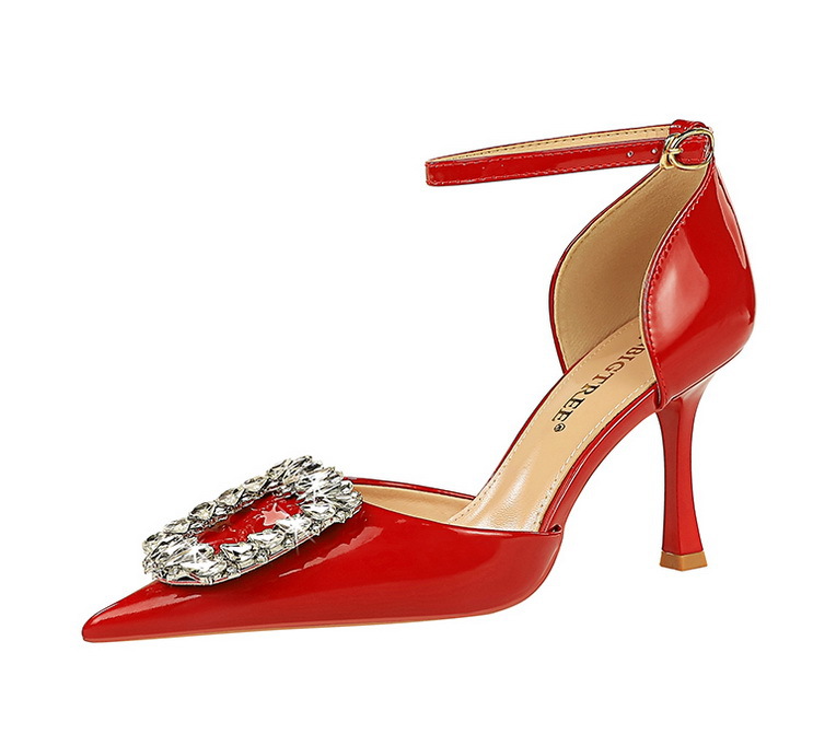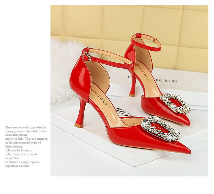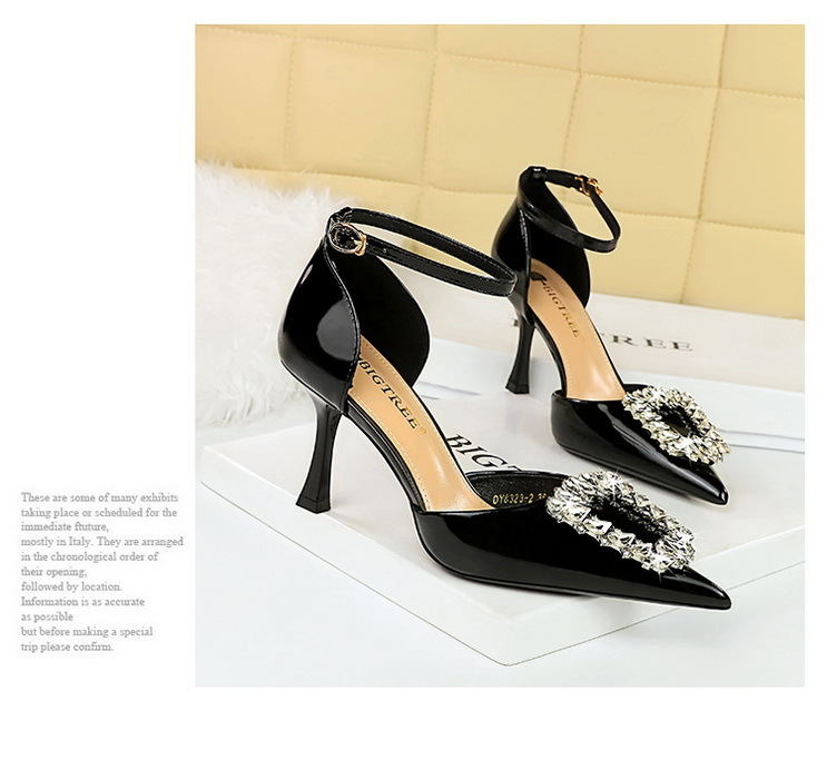 8323-K30 Style Women's Shoes Banquet High Heels Shallow Notched Pointed Hollow Water Diamond Buckle Slip-on Sandals
