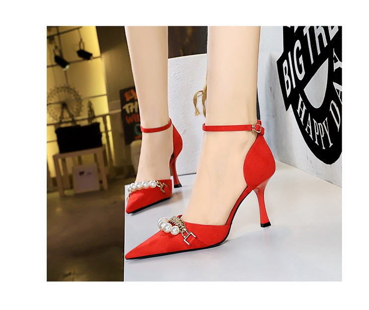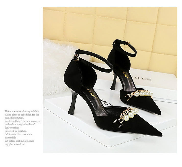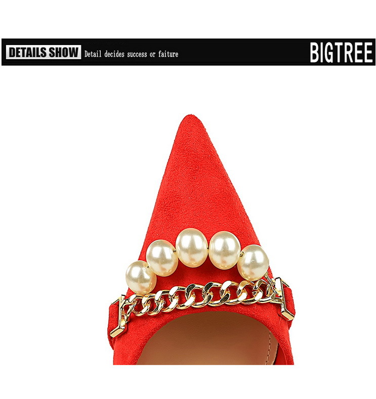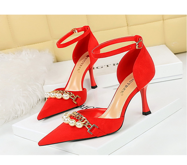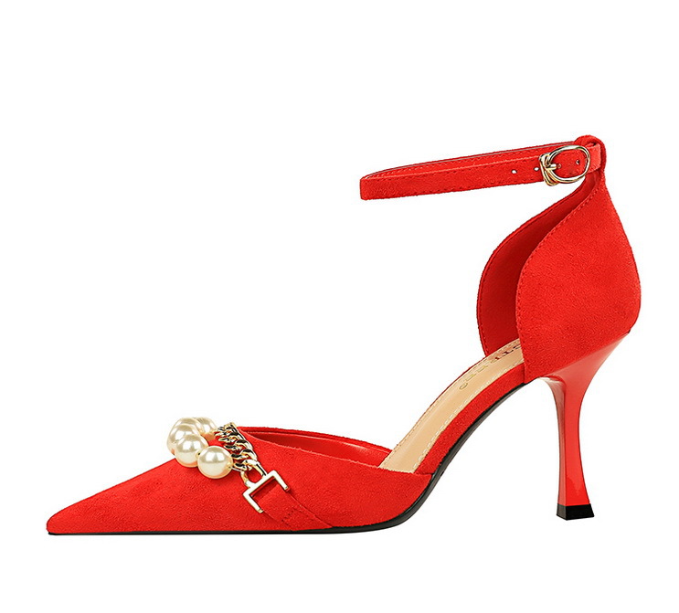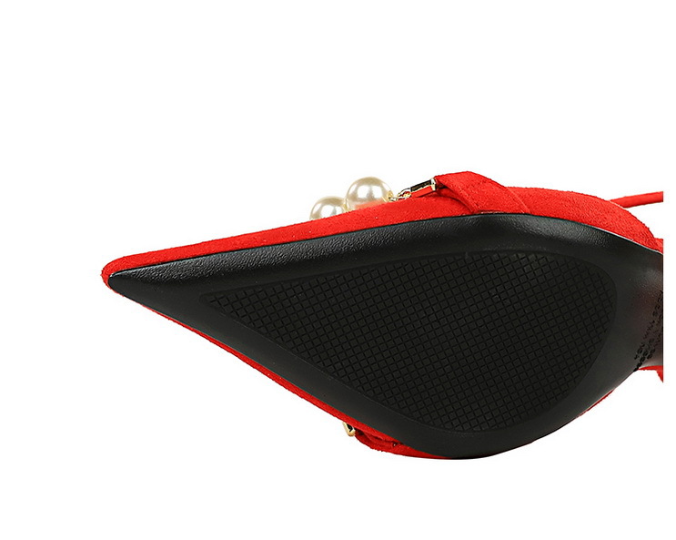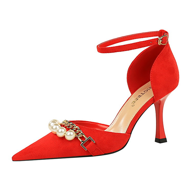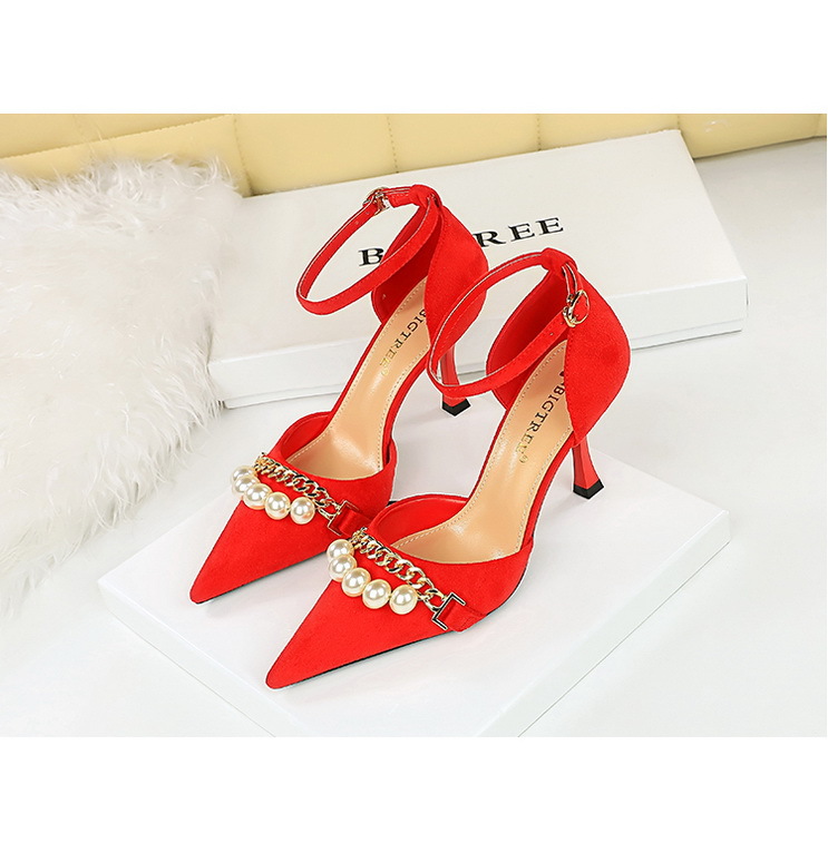 8323-8 Hollow Shoes Women's Shoes Suede Shallow Mouth Pointed Pearl Metal Chain with Sandals Wedding Shoes
