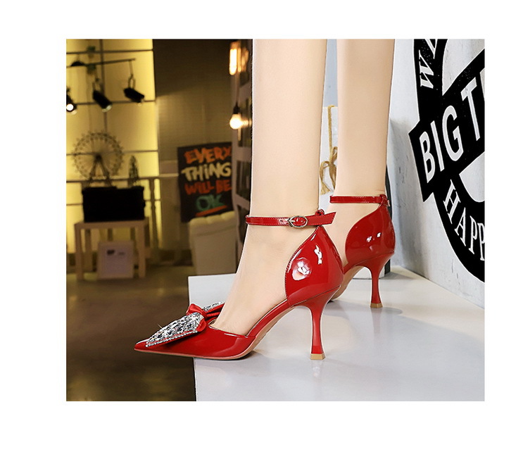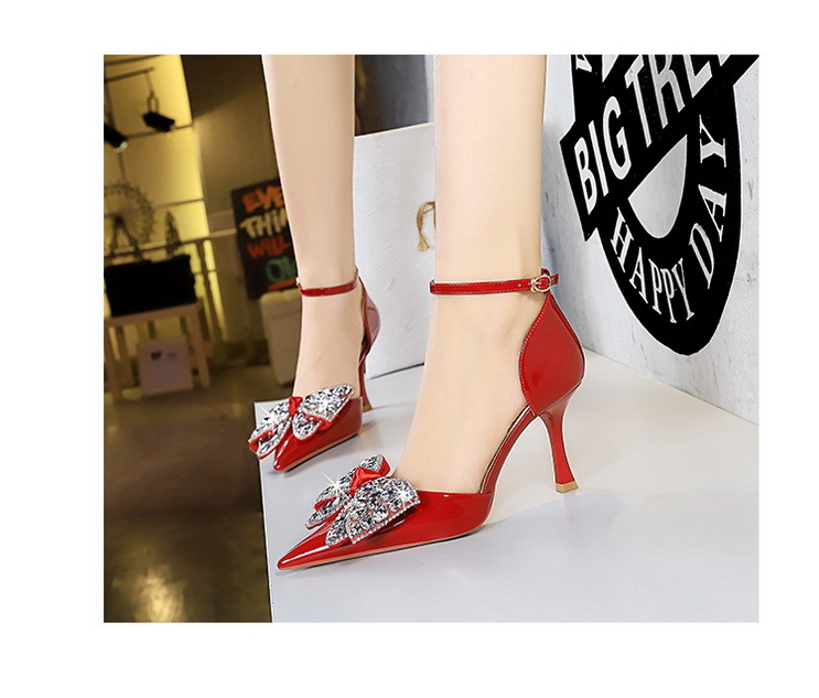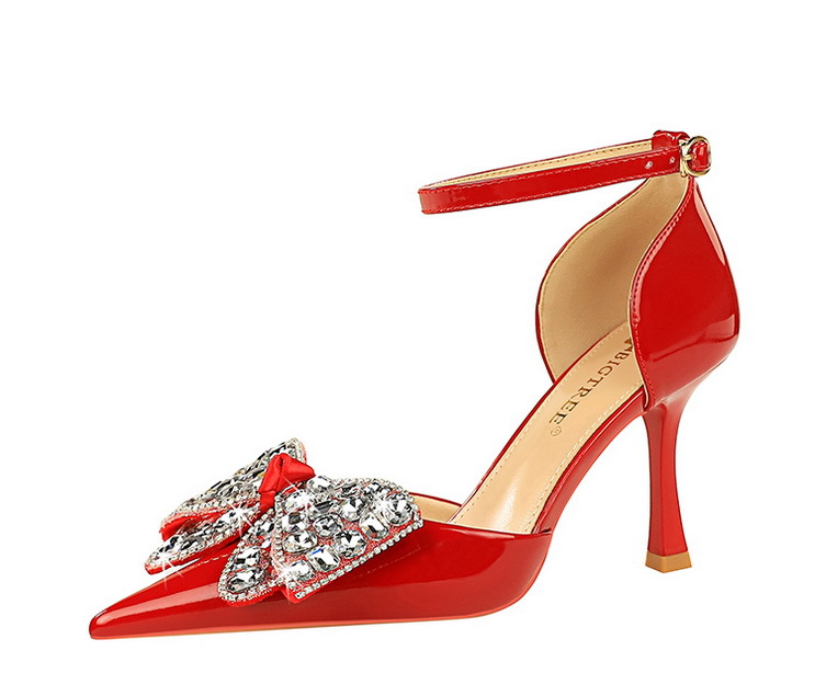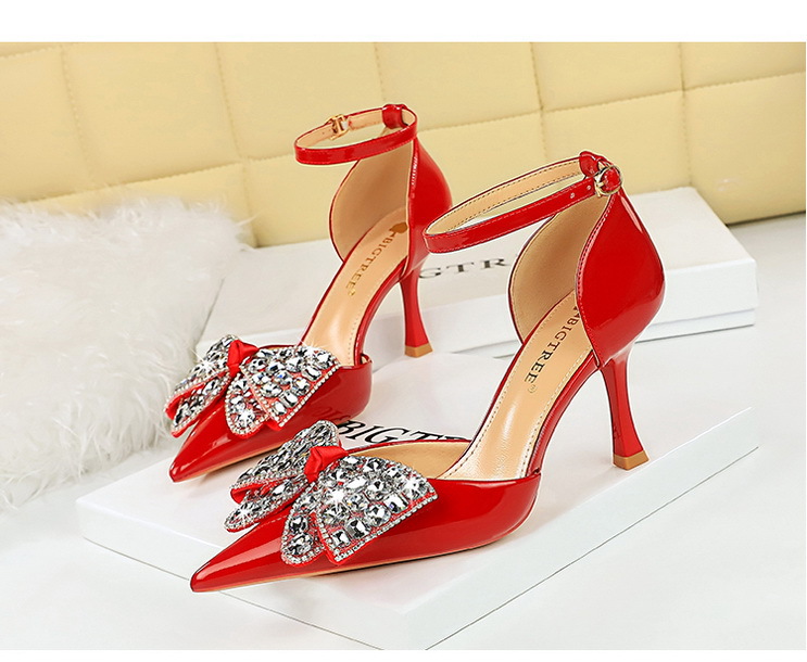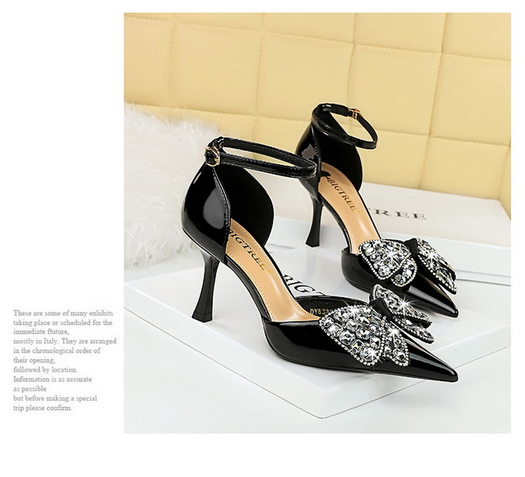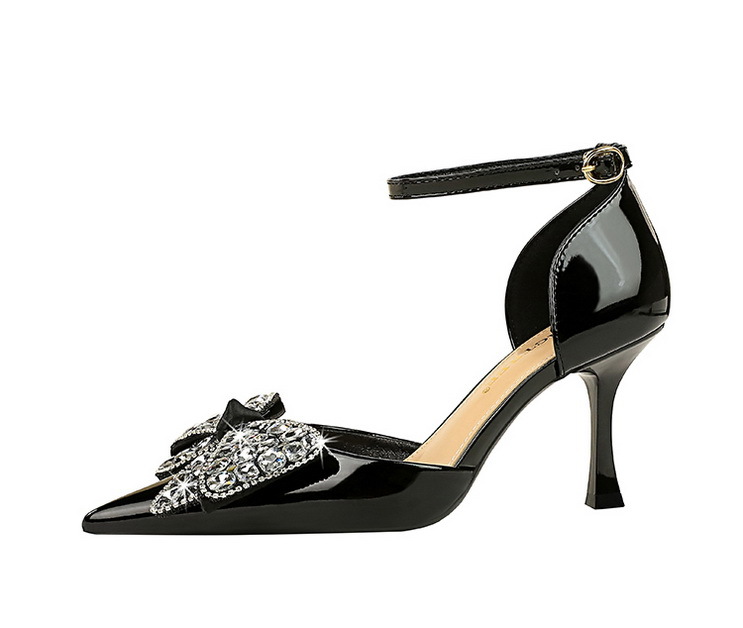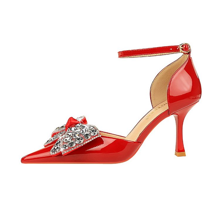 8323-H21 Fashionable Banquet Hollow High Heels Shallow Mouth Pointed Rhinestone Bow Knot with Women's Sandals