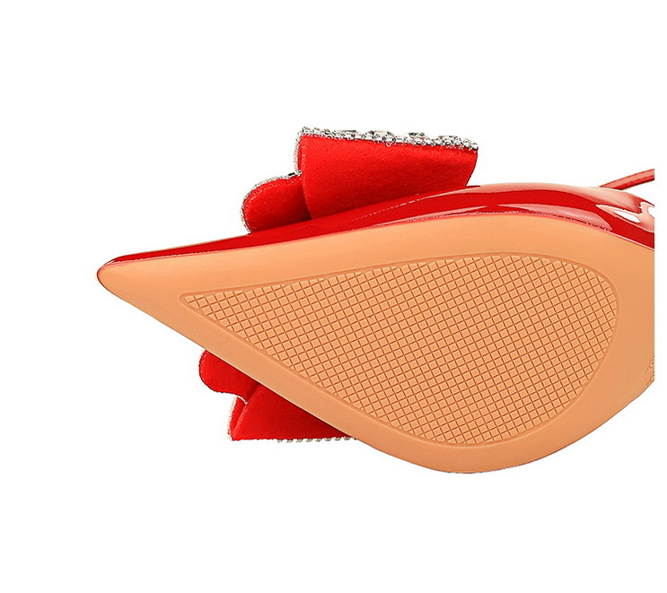流行元素:韩版 时尚 宴会 中空 镂空 漆皮 水钻蝴蝶结 一字带 凉鞋