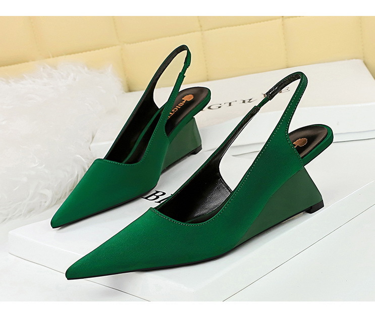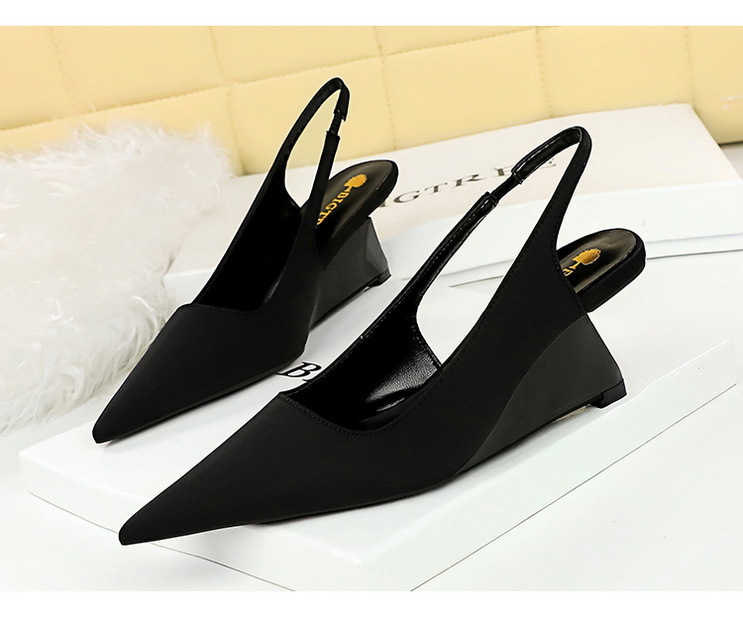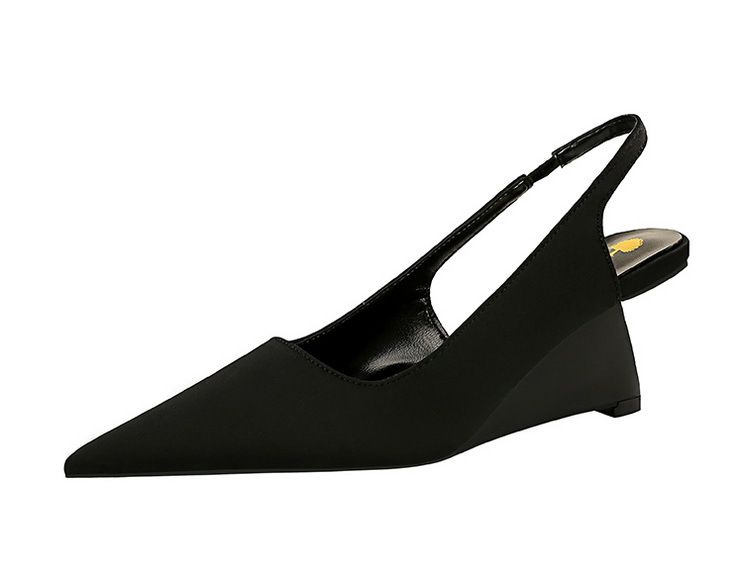 1097-2 Fashionable and Simple High Heel Slope Heel Shallow Notched Pointed Hollow Back Strap Banquet Women's Single Shoes High Heel Shoes