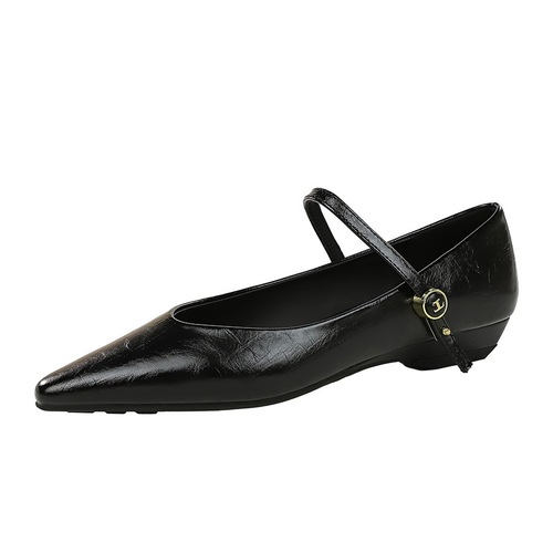 2182-1 Commuting Women's Shoes with Slope Heel, Pointed French Shallow Mouth, Versatile, Casual Evening Style, One Button Strap, Mary Jane Single Shoes