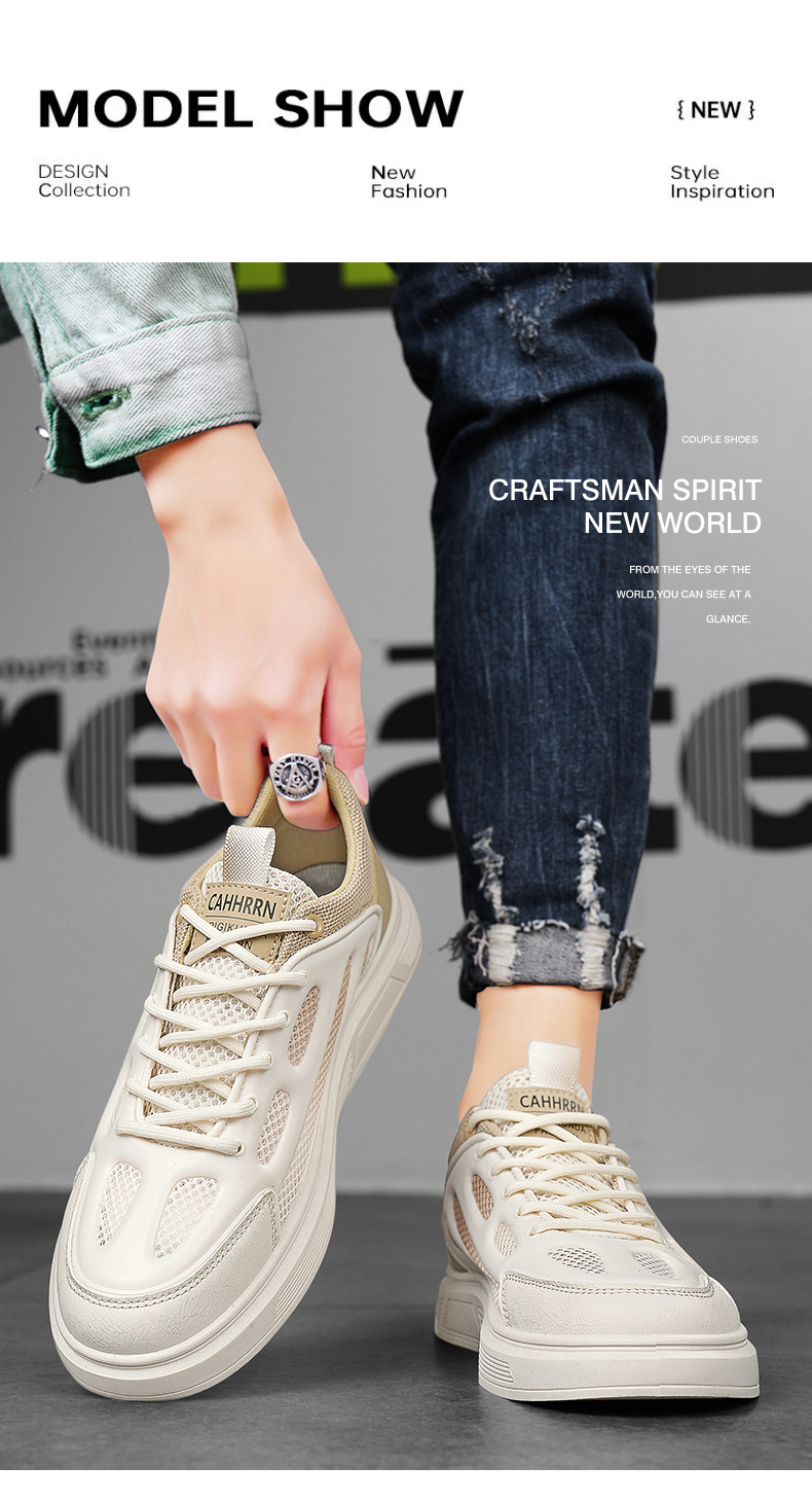 Leisure board shoes, student and youth mesh men's shoes, new breathable and trendy shoes for summer 2024, men's flat bottomed small white shoes