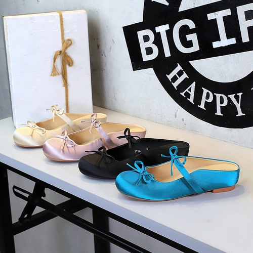 1633-1 French satin bow with a flat bow and shallow mouth, half trailer, female hollow out design, increased height, round head, cool slippers